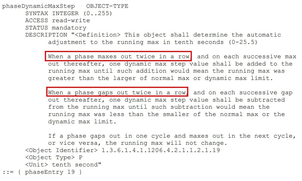 By NTCIP 1202 v3 standard, each phase could have three maximum green times, designated as Phase Maximum 1, Phase Maximum 2, and Phase Maximum 3 parameters: